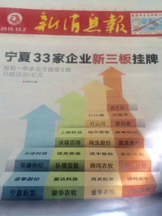 寧夏33家企業(yè)新三板掛牌總市值增5倍,已超過80億元,盛天彩名列其中。